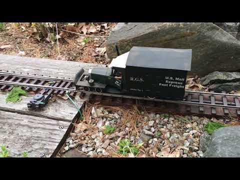 The locomotive, a C19, will enter service immediately, as it is in fine fettle from the RGS shop’s maintenance department. The two rail trucks, however, will need some outshopping before they can be pressed into service. One will need a fairly major overhaul, and the other, with a freight box on the rear instead of the usual open bed, just needs a bit of wiring repairs and should be delivering the mail and light freight within the week.