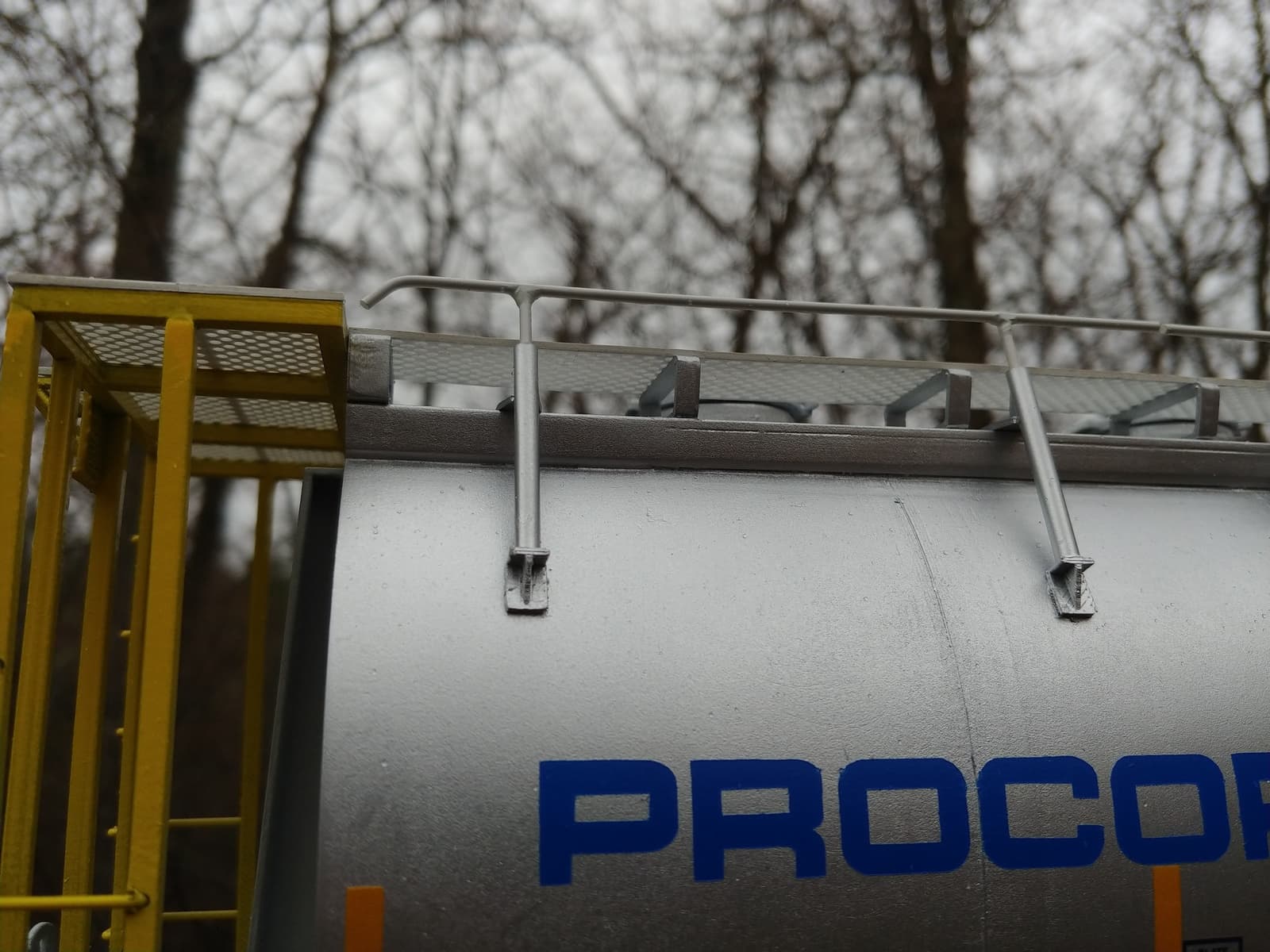 I fashioned the safety rail sections from brass rod.