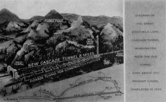 I have somewhere a picture that shows the Mill Creek Shaft (the vertical shaft, Cascade Tunnel and Pioneer Tunnel. Here’s the best I could find online of the drawing that I was thinking about.