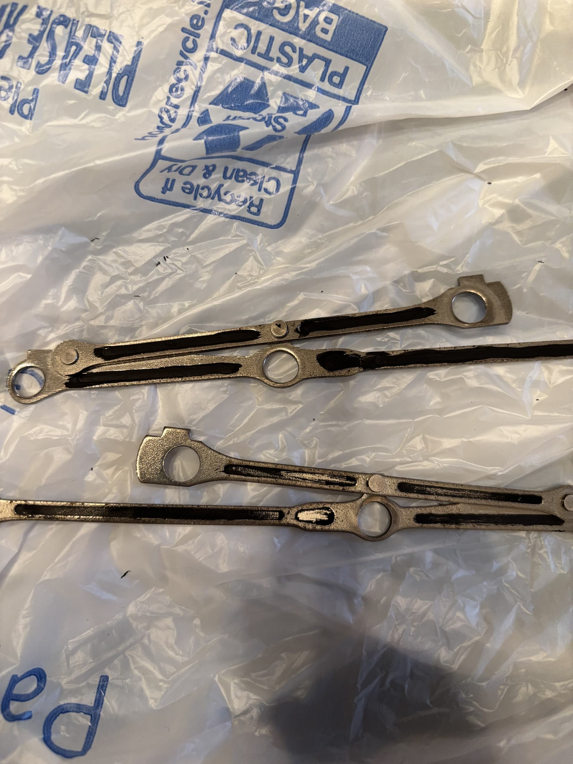 Does anybody have any recommendations for getting these back to their original shiny state? I’m comfortable with touching up the black paint accents if cleaning and restoration ends up removing them.