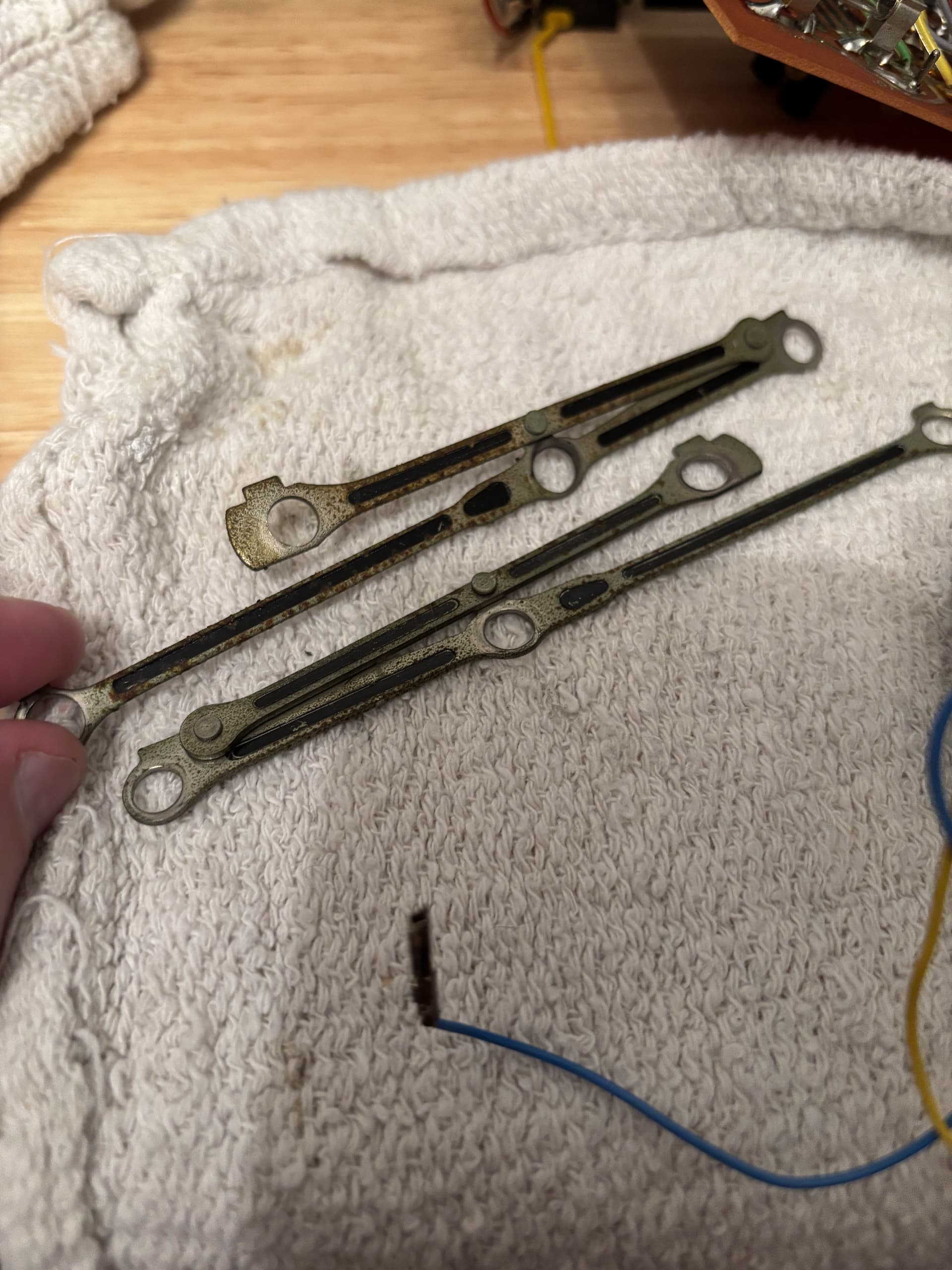 - Lastly, the side rods are in bad shape. They’re sticky and turning funny colors: