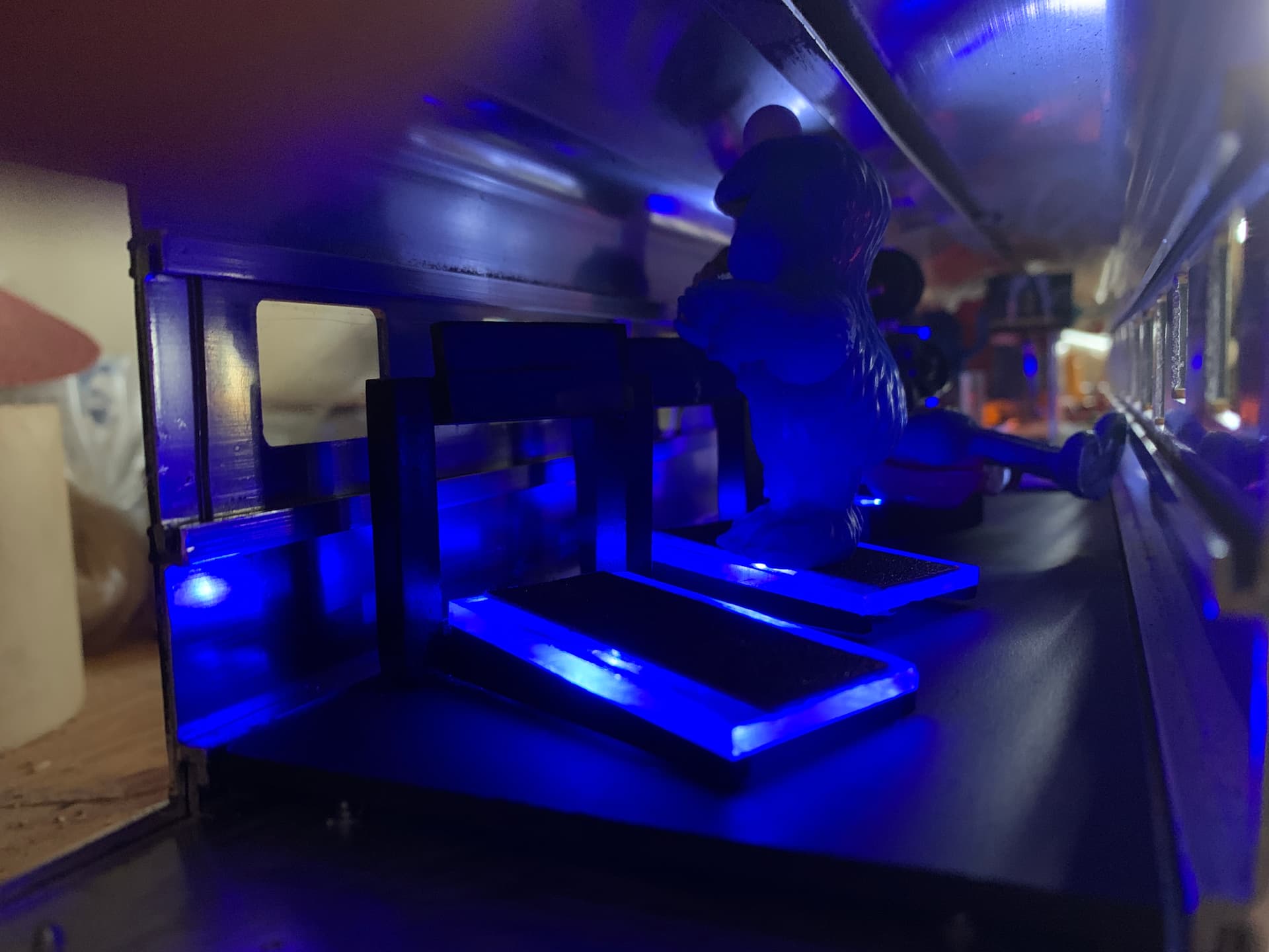 I did play around with the blue and as cool as it was as a stand alone element it was way to much blue with the rest of the gym mixed in. Besides the tub is it’s own element in the overall theme and yes, the blue made Grovers ass look fat!