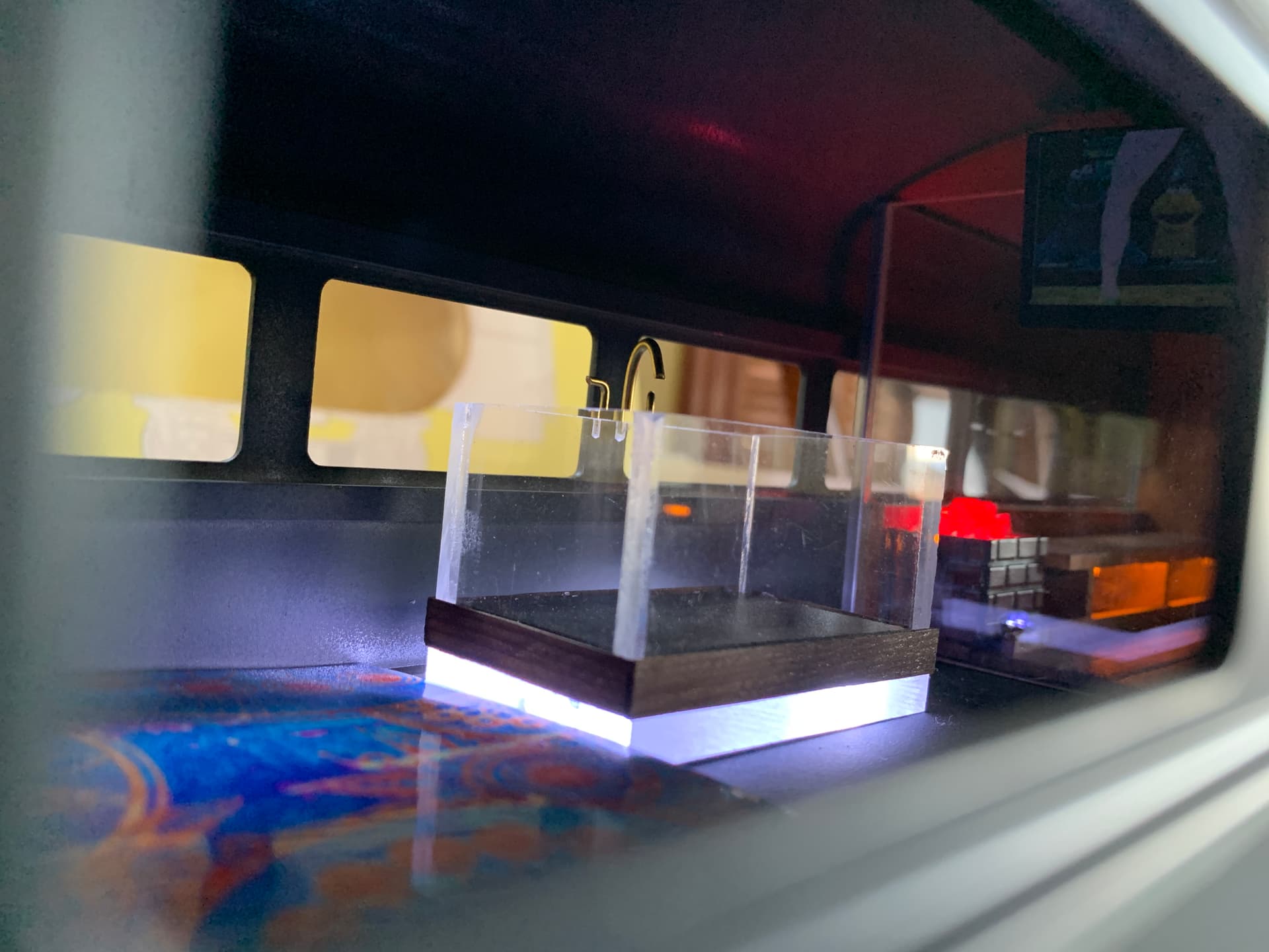 Despite the snowy weather I dug out for “shed” time and the rest of the snow will still be there waiting for me in the morning. The Japanese soaking tub got some old growth redwood trim around the base and then we turned on the lights.
