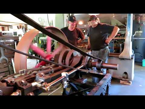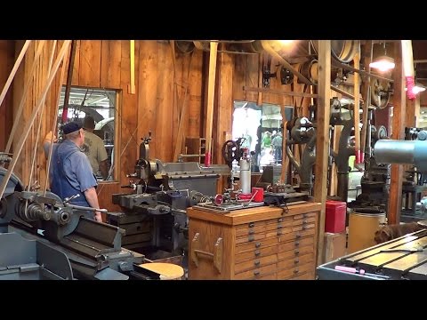 - Steam engine to power a drive train that uses straps to power tools in the manufacturing area