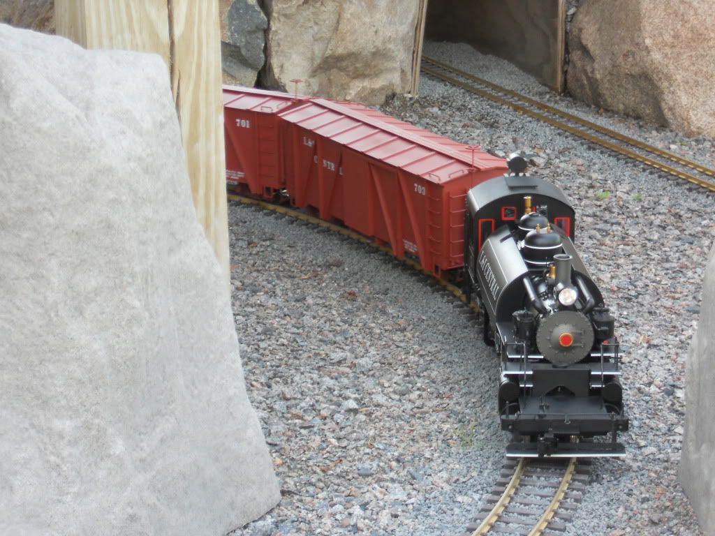 Sadly our club layout curves were a bit tight for the ‘K’ (they were designed for LGB/USA 1:24 stuff). So today Rodney came to the tiniest layout in the north…Yep, the L&I RR went battery this afternoon!