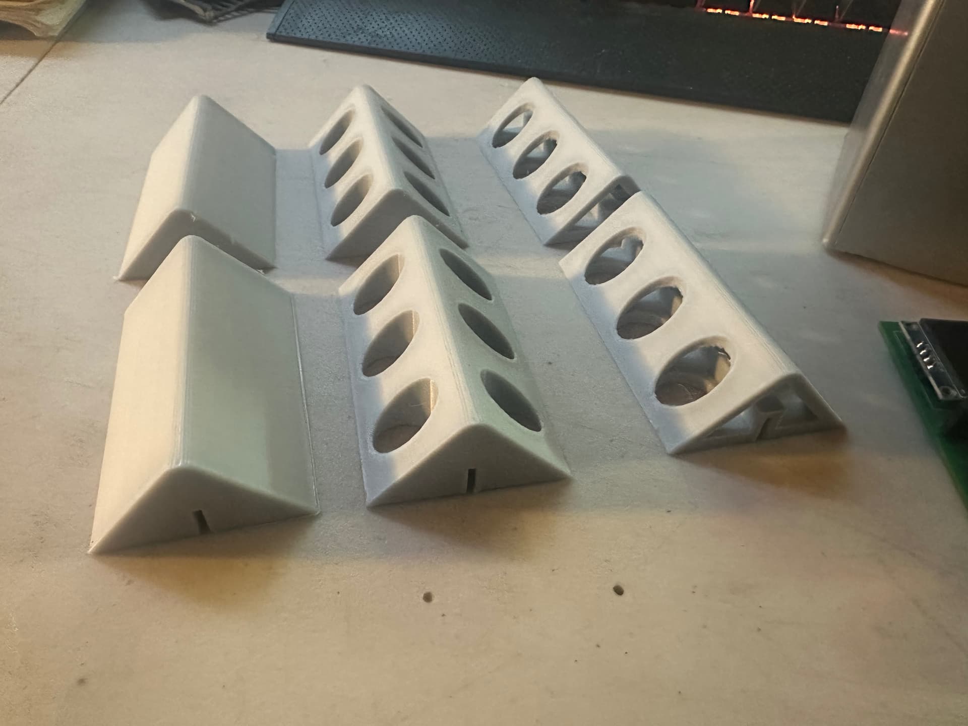 Left to right is this is the right size followed by use less filament and then the final allow the bracket to be used as a wire chase