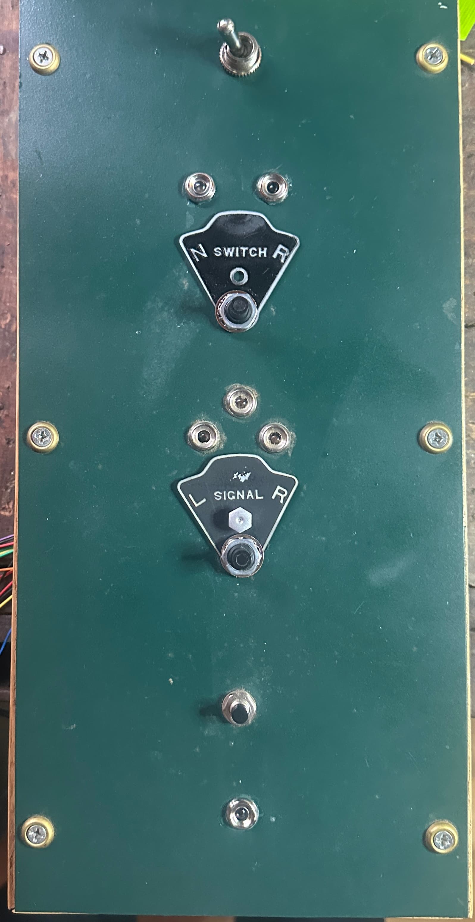 Indicator lights and lever for switch control.