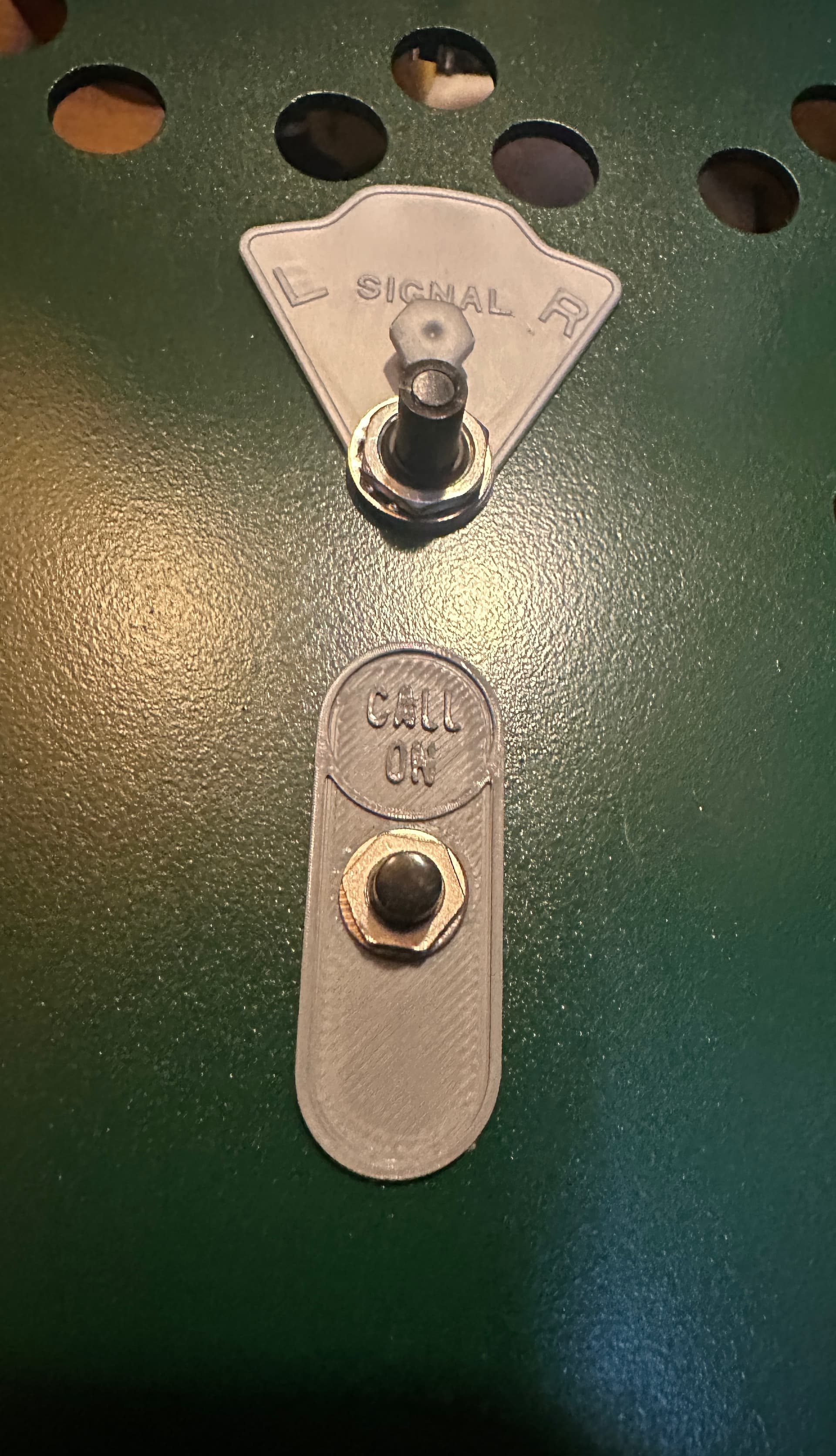Indicator lights and lever for signal control.
