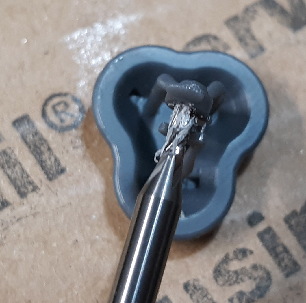 other than removing supports i cleaned up the 1/16 dia hole with a 1/16 four flute end mill and glued the magnets in place.