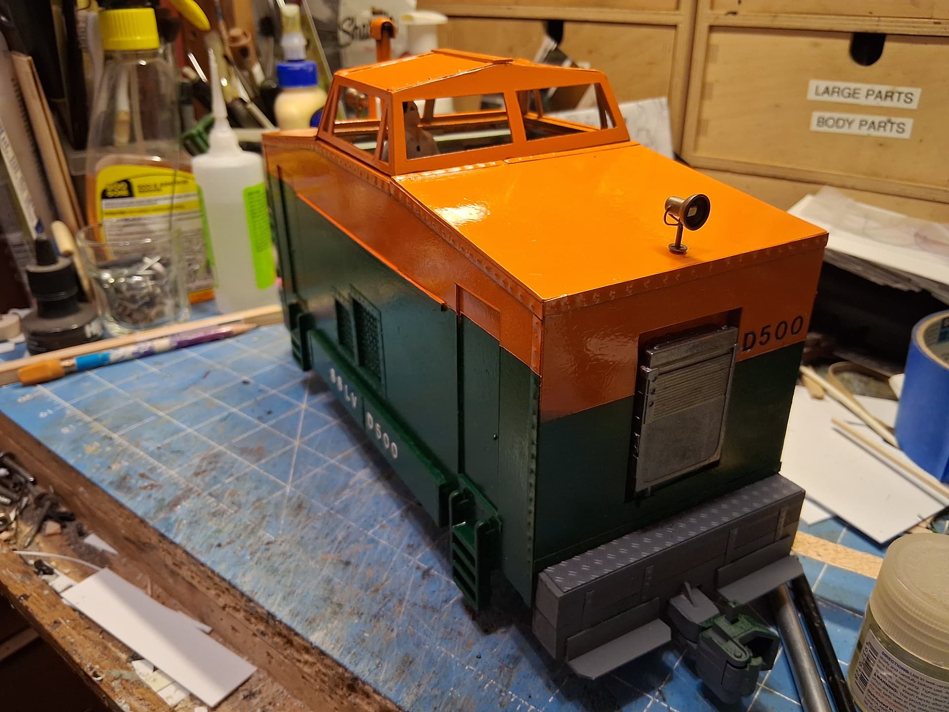 Hi all, haven’t posted much lately but wanted to share my latest build, it’s based on a homemade engine built for the Southern San Luis Valley RR, often called the loneliest railway in America.  The D500 was actually the second version of a homemade engine built on second hand tender chassis.  This had chain drive and helped keep the line open long after it otherwise would lasted. It’s 0.40 sheet styrene over a basswod platform with 2 Aristo Centercab drive bricks. The engine still exists near where it ran for 40 years in Blanca, Co.