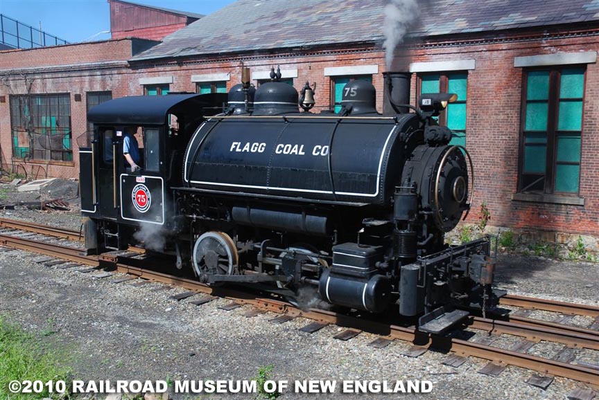 This may be a first for the RR Museum of New England / Naugatuck Valley Railroad. Flagg Coal Co. #75 has been visiting for a little over a week and will be pulling 4 excursions per day starting at 10AM tomorrow through 4PM Monday.