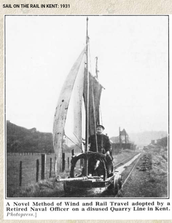 I always was dubious about sail-powered rail cars. They would work fine in the direction of the prevailing wind, but how does one get back? You cannot tack on track! So how does one go back? Perhaps poling, as with a Venetian gondola (the boat)?