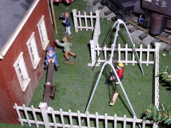 This building I had custom made for about $40 by a guy who sells them on evilBay, it was my Christmas gift from me to me 2 years ago. The traction engine is a cast metal toy.