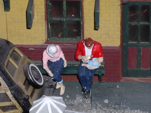 The 4 guys cutting up firewood is a mini scene I scratchbuilt just a few weeks ago