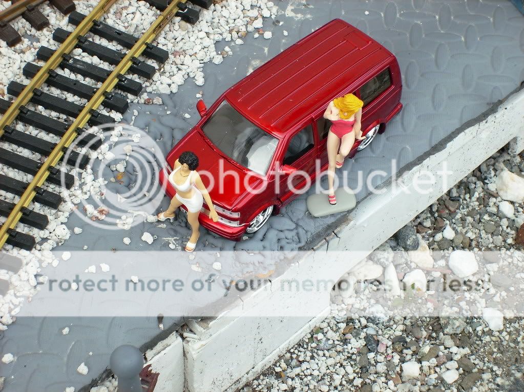 These pictures are just a few of the pics I took of my sideyard railroad in various stages of being built. It has a basic theme of when the time comes when California from San Jose to Los Angeles is so industrialized that it sits on steel plates. No other schemes or dreams like my backyard railroad has. The backyard railroad has a story line for every thing on it including the hookers. I ended up building this sideyard railroad because I made a typical newbie mistake when I got going with this hobby. I did not research anything about what they meant when they talked about four foot diameter curves and so on. The backyard road has four foot diameter curves and I bought four engines that need 8 foot curves. Well, I kept the engines and built the sideyard road for them. I spend more time on the backyard road because it’s my firstborn so to speak and use the sideyard road when I get intoxicated and just like to sit and watch them go around or when I have company coming that wants to see the trains. BTW–I APPRECIATED ALL THE WELCOME REPLIES TO MY FIRST MESSAGE HERE WHEN I FIRST SIGNED ON. GOOD TO BE HERE!