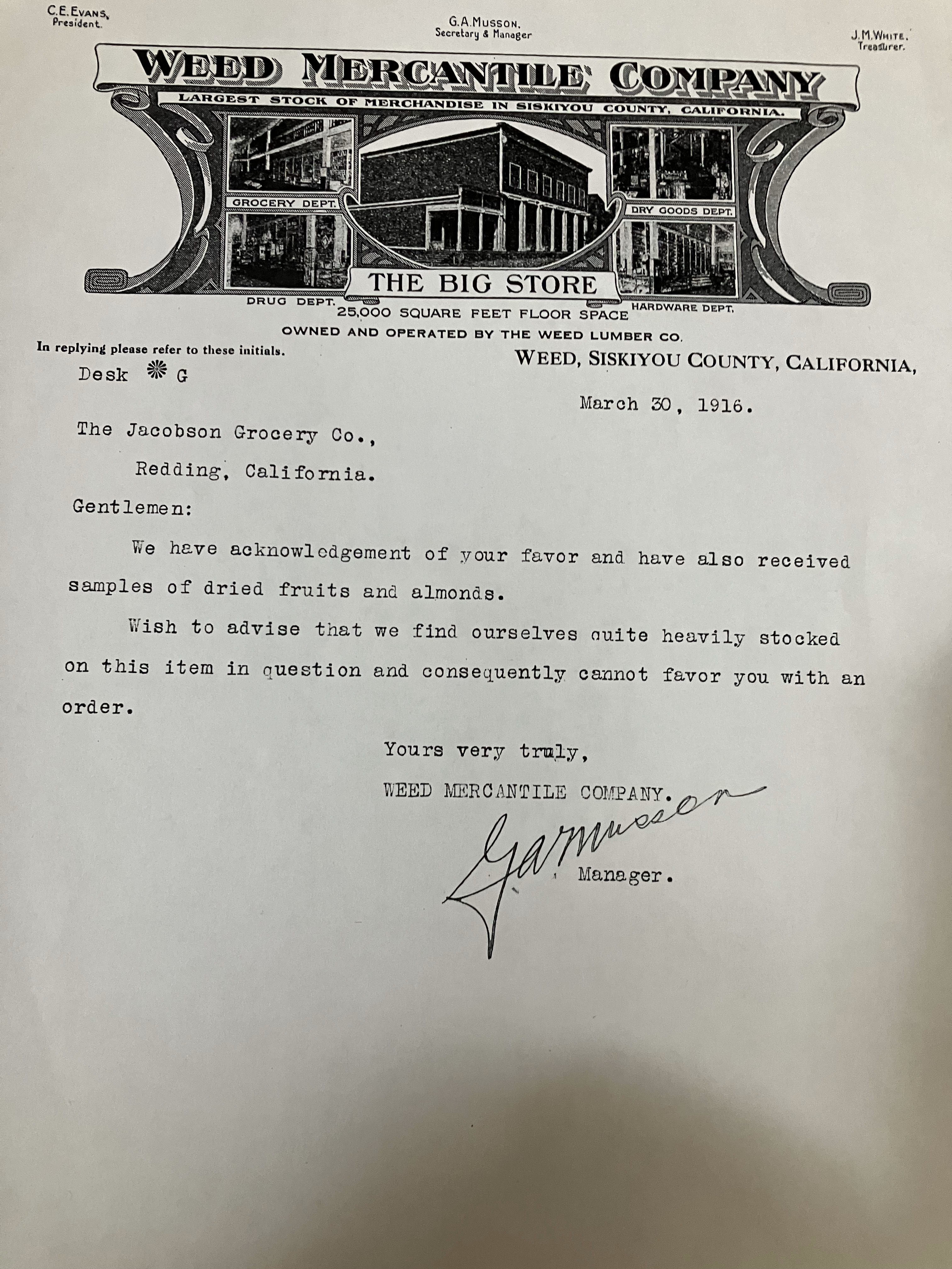 I have collected a lot of information and artifacts from the Weed Lumber Co over the years.