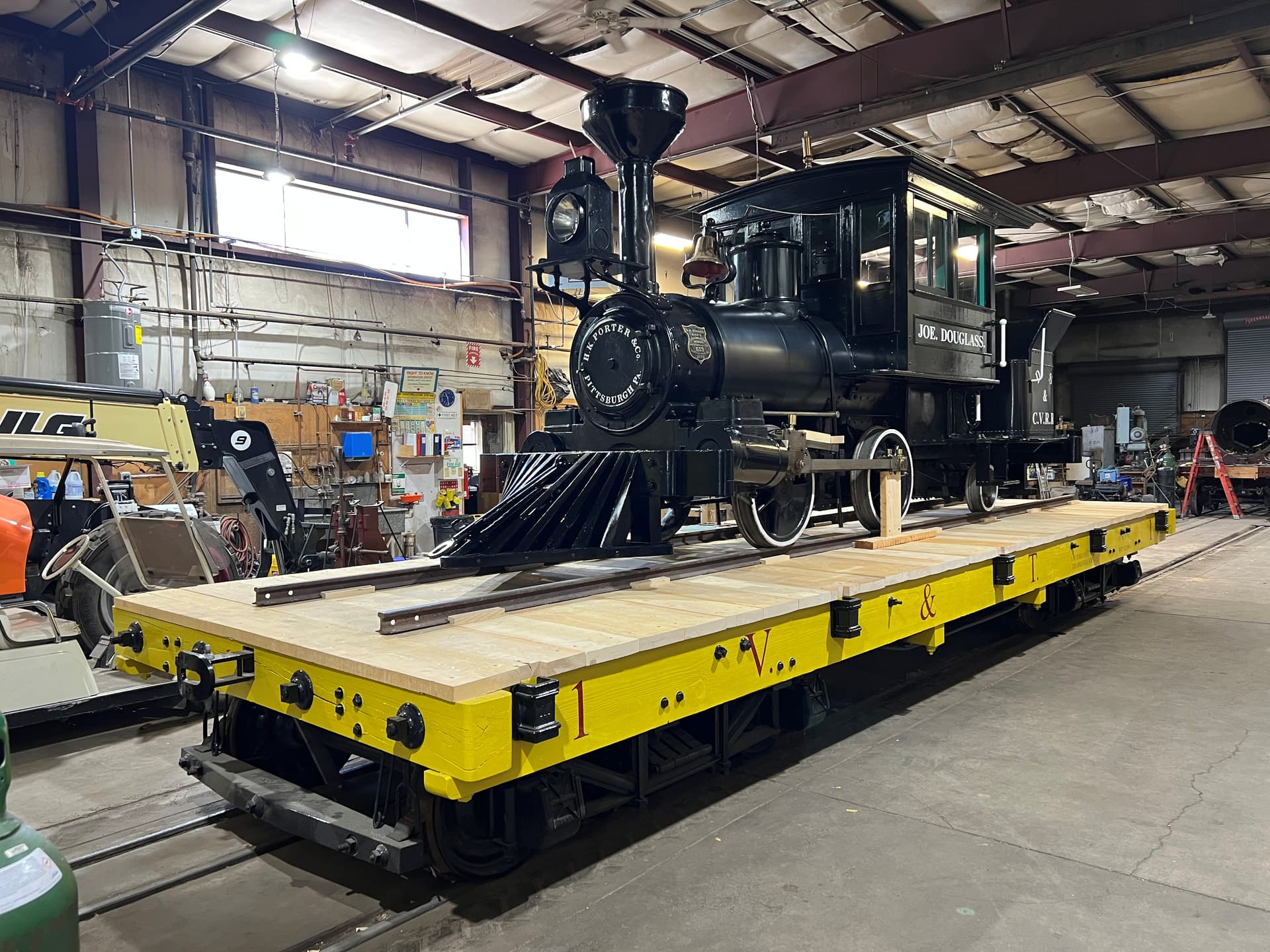 The Joe was often serviced by the V&T, and did so via a short trip from Dayton NV over the C&C (also NG) to Mound House NV. There it was placed on the V&T’s standard gauge transfer car, brought to their Carson shops, and worked on.