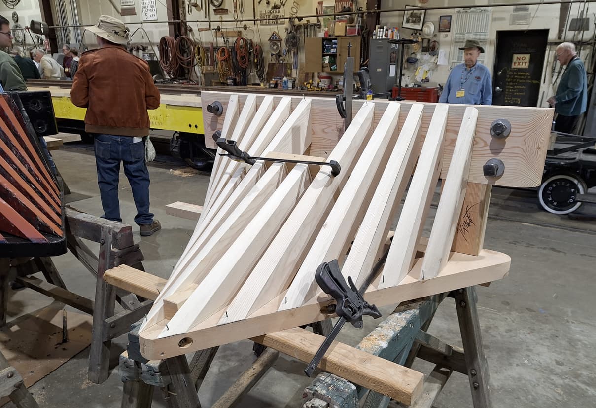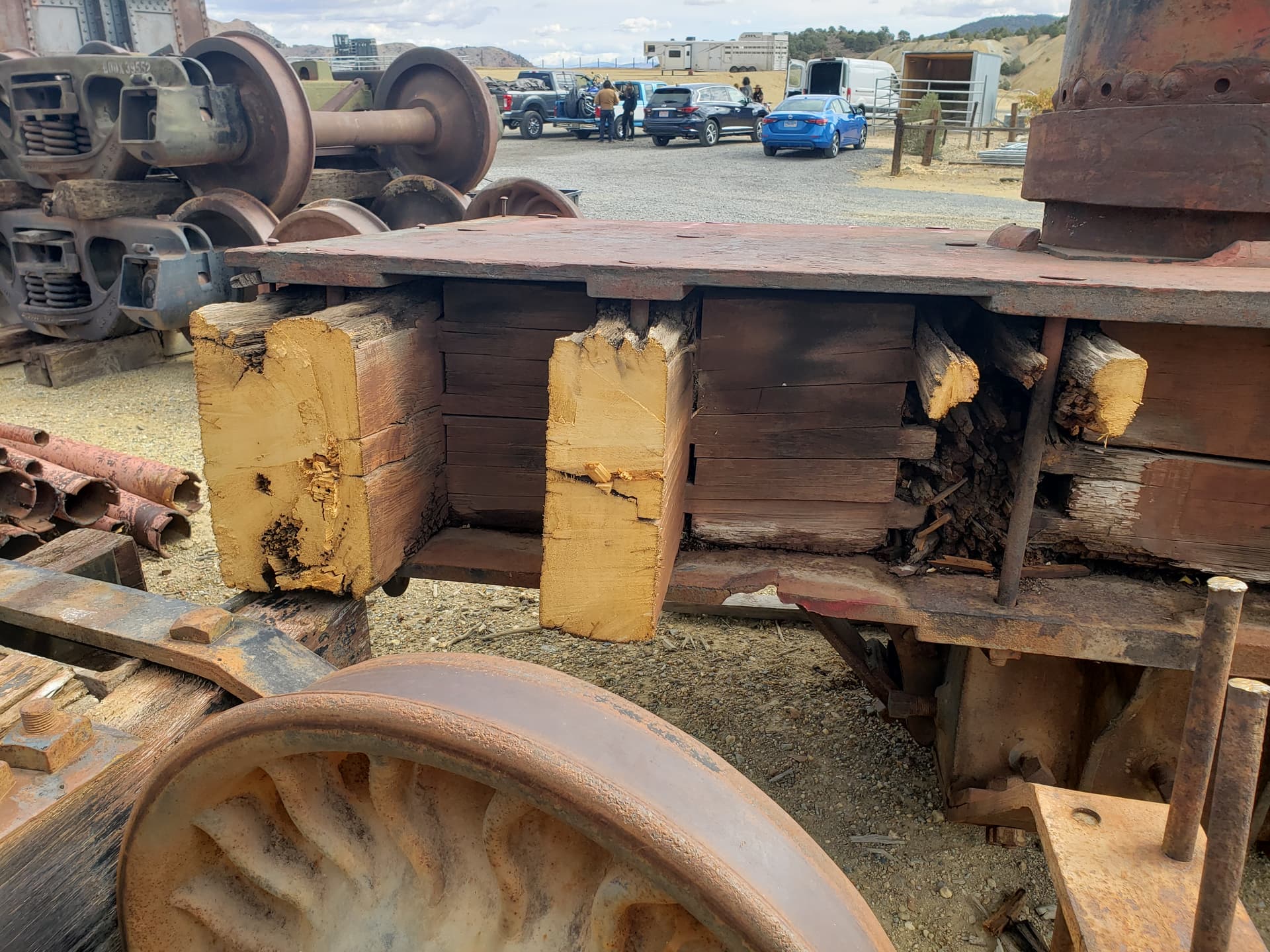 So that’s where the transfer car comes in; and I’ve long wanted to make a model of it, to park the Joe on. NV State RR Museum (NSRM) had started on restoring it in '21, and I was amazed by the heftyness of its swing trucks then, and impressed by their woodwork.