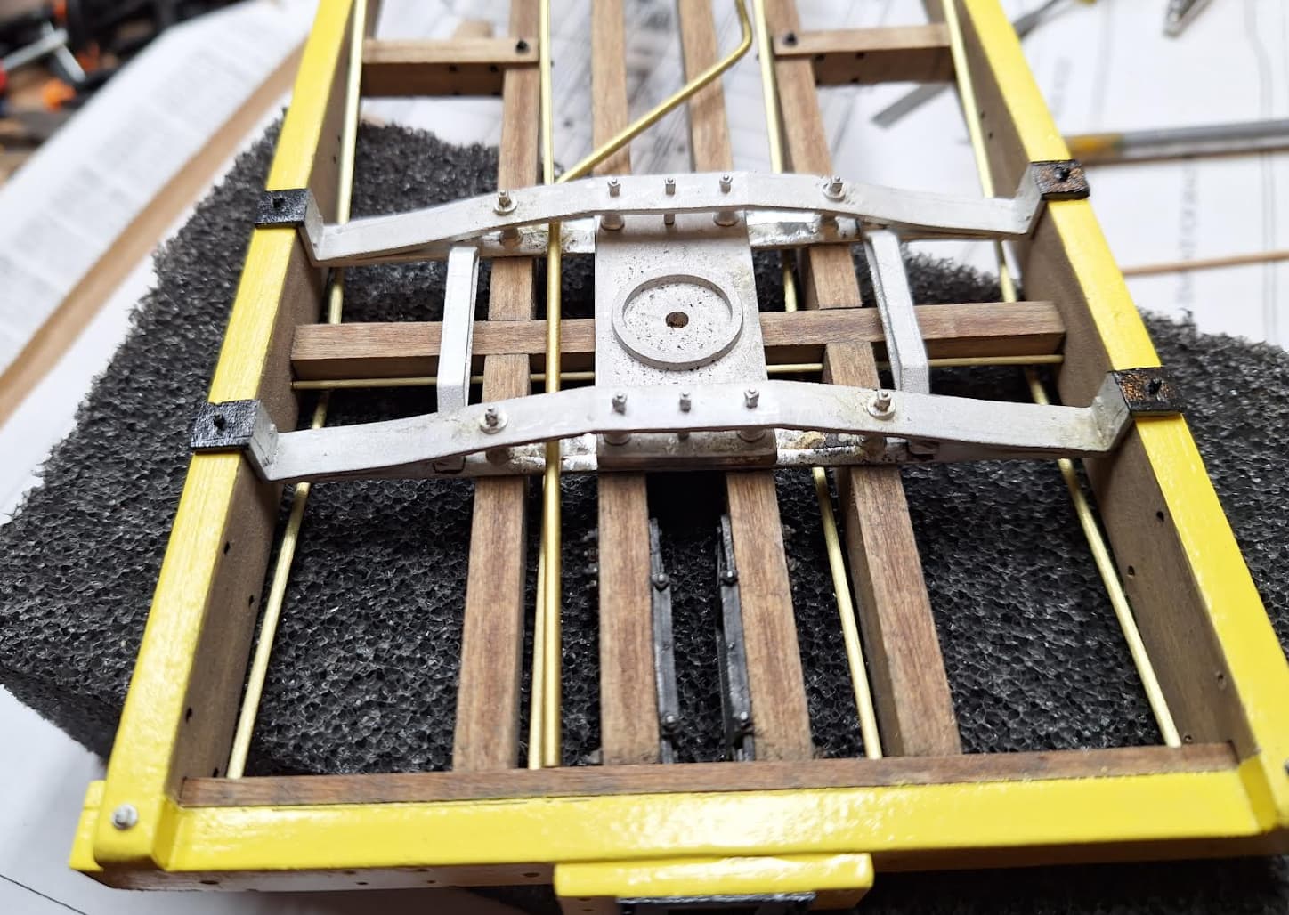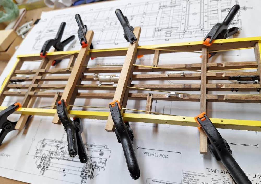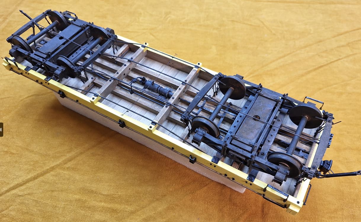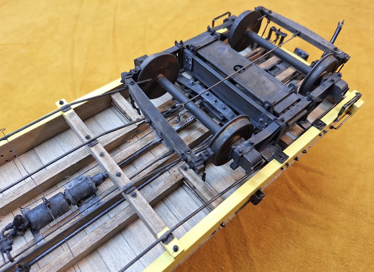 These are all sub-assemblies, each with tiny holes to drill. The wood parts on the bolster & brake beams were pre-lasered from solid wood (vs. plywood), which is great for authentic looking grain.