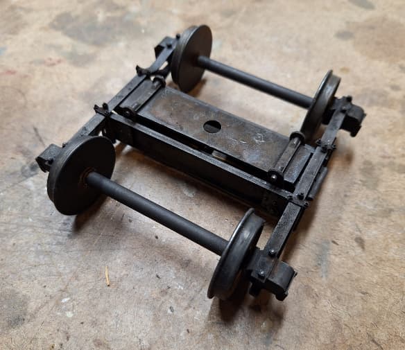Got more done on the undercarriage. The coupler drawbars actually work. The castings will get blackened in place.