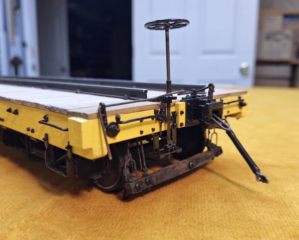 This weekend I’ve been putting on remaining details, such as brake rigging, trucks, and deck, and also been doing touchup painting.