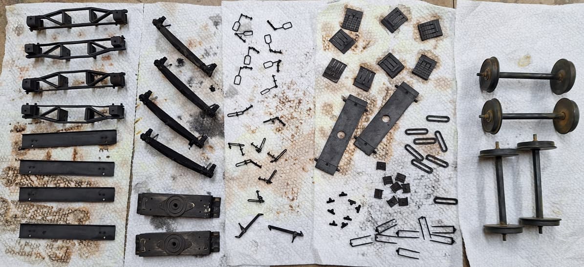 It was then time to start the trucks, and here are most of their parts. Most pieces are (highly detailed) white metal castings, with very little cleanup required.