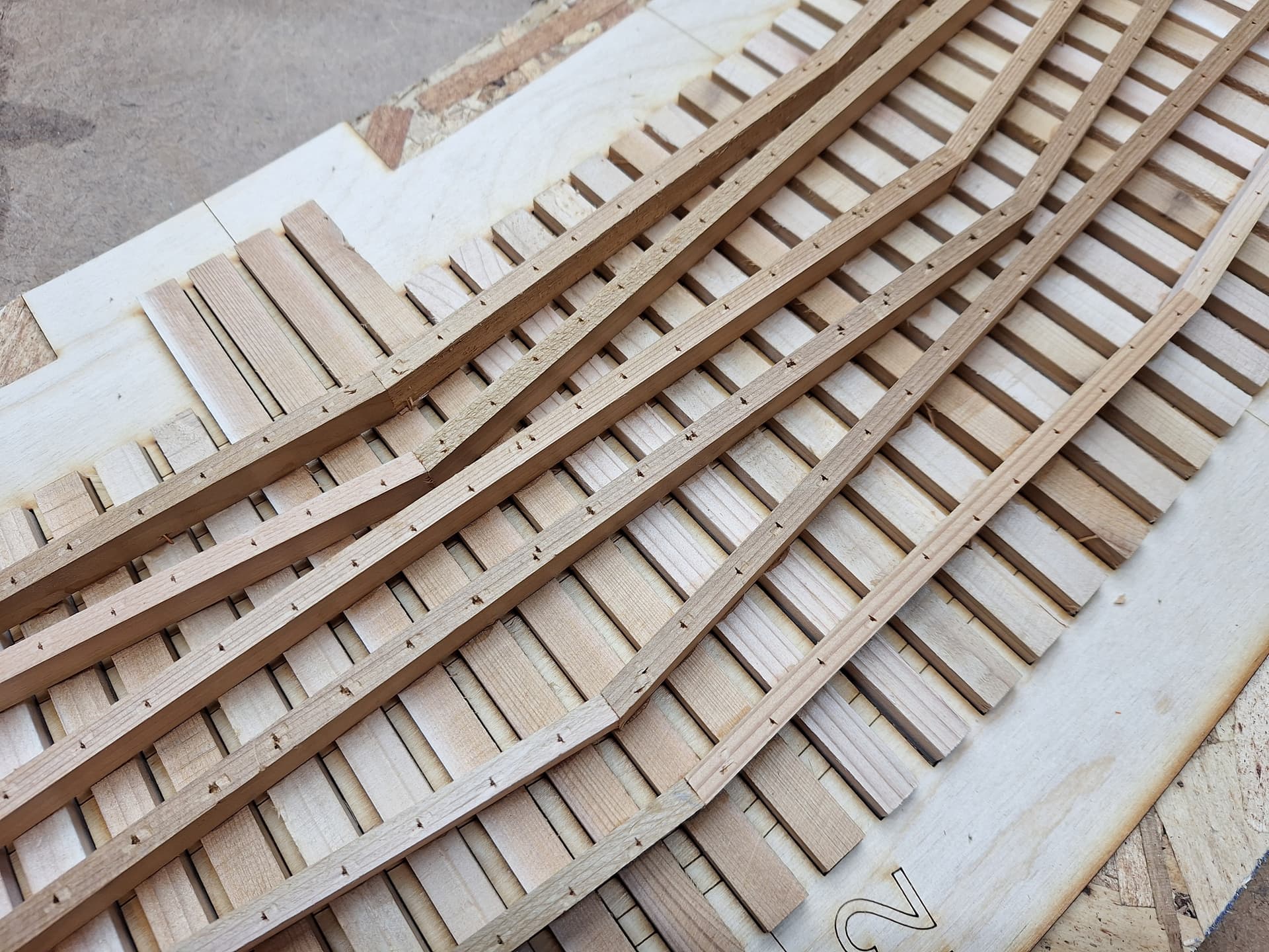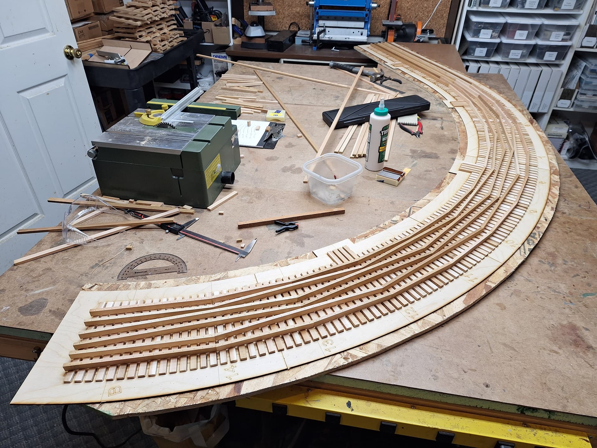 Tommorrow, hopefully joists. Or stringers. Or whatever the beams directly under the ties are called.