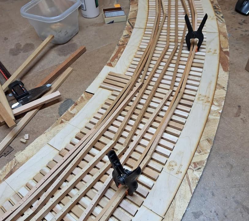 Tommorrow, hopefully joists. Or stringers. Or whatever the beams directly under the ties are called.