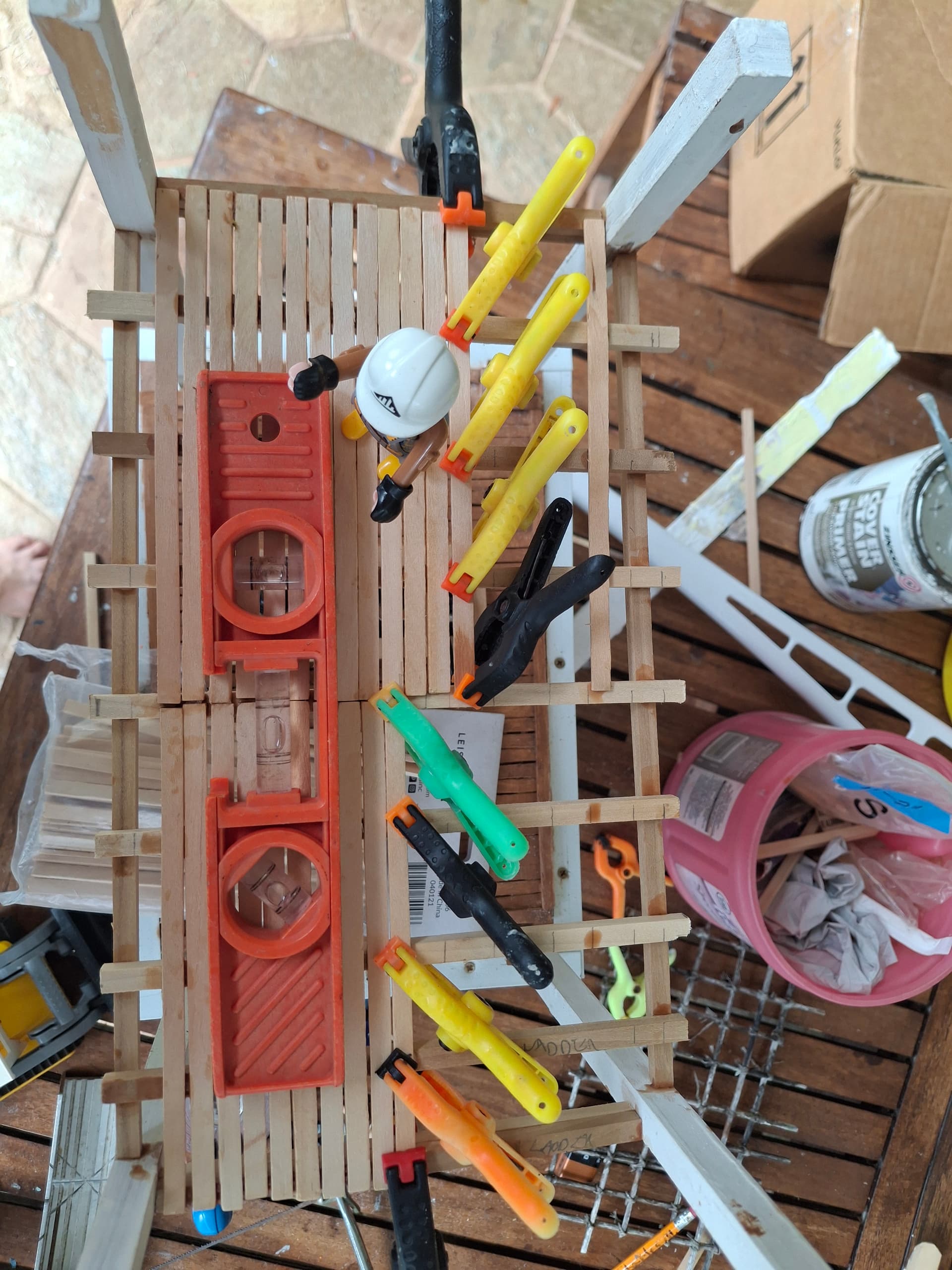 Next up is some craft stick decking, a few more external “braces,” and the wiring! I am in my happy place again in terms of tools, materials, and techniques! Yay!
