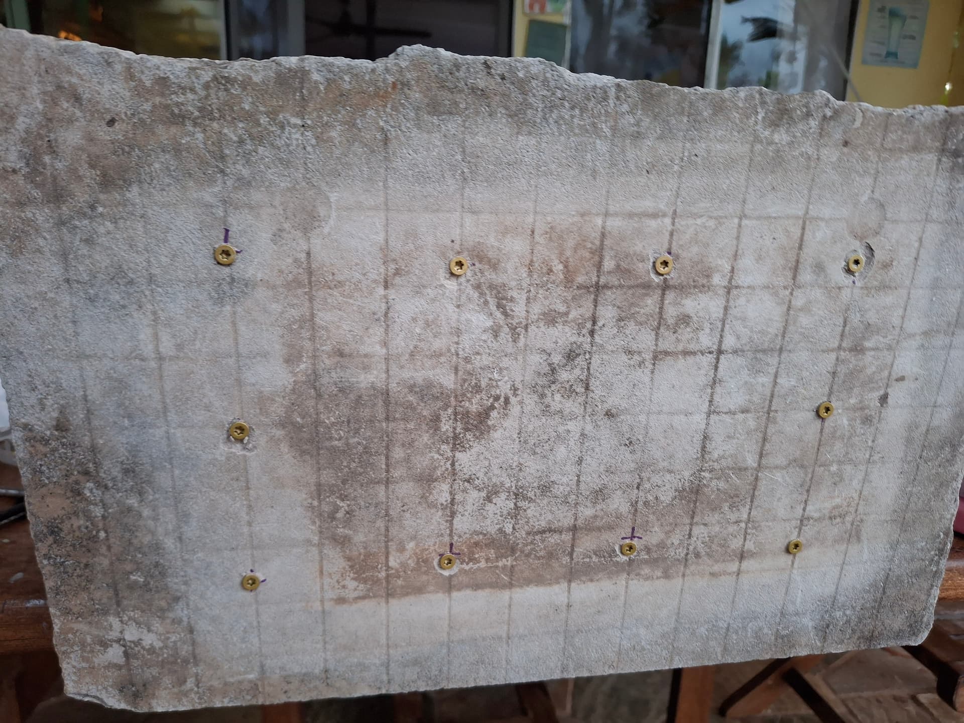 I though that the construction cement alone might not endure over time, so I did put some deck screws into the core through the base.