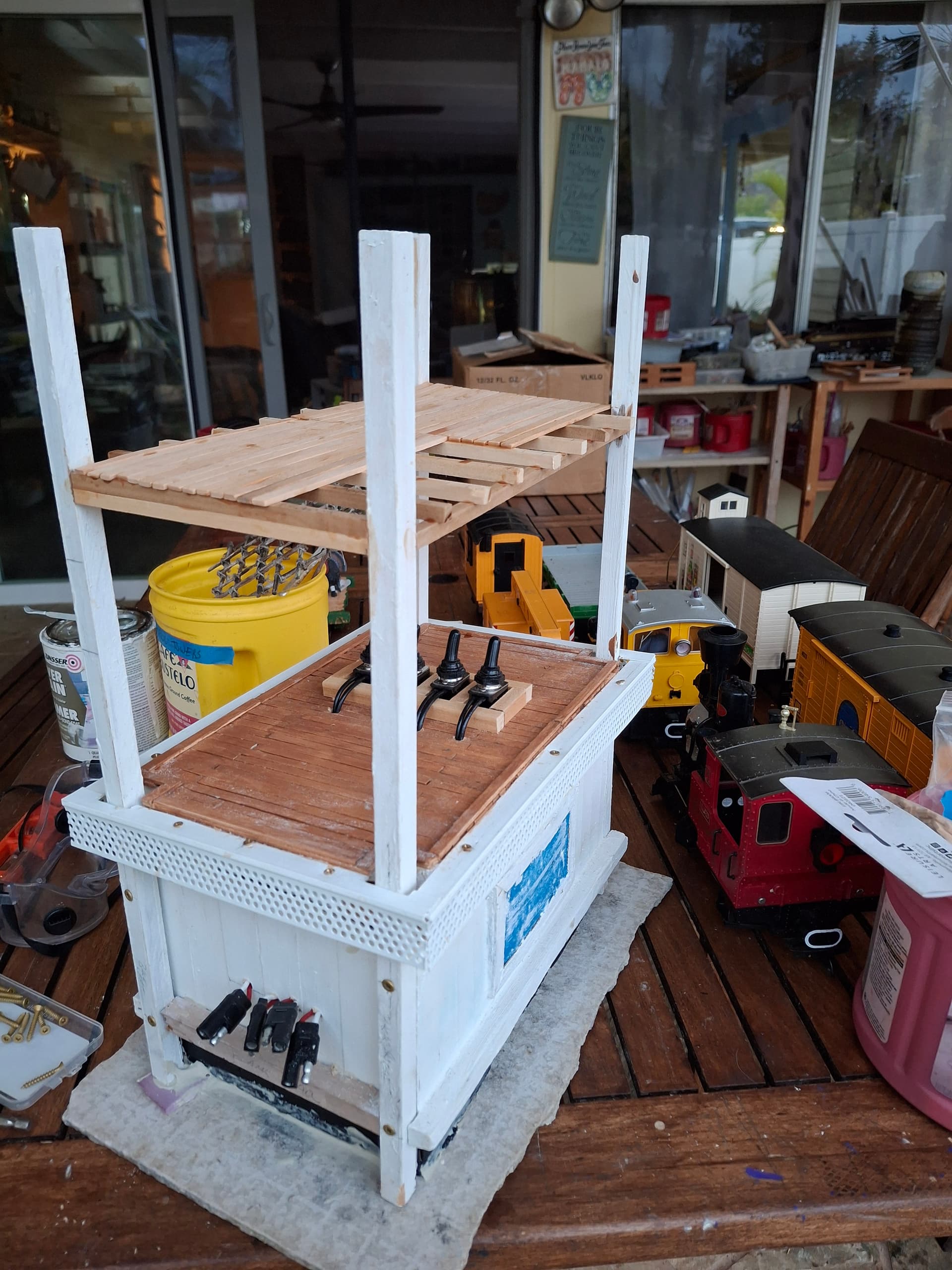 Various touch up, painting, wiring and some sort of roof - probably “canvas” - over the observation deck are still left! Getting there!