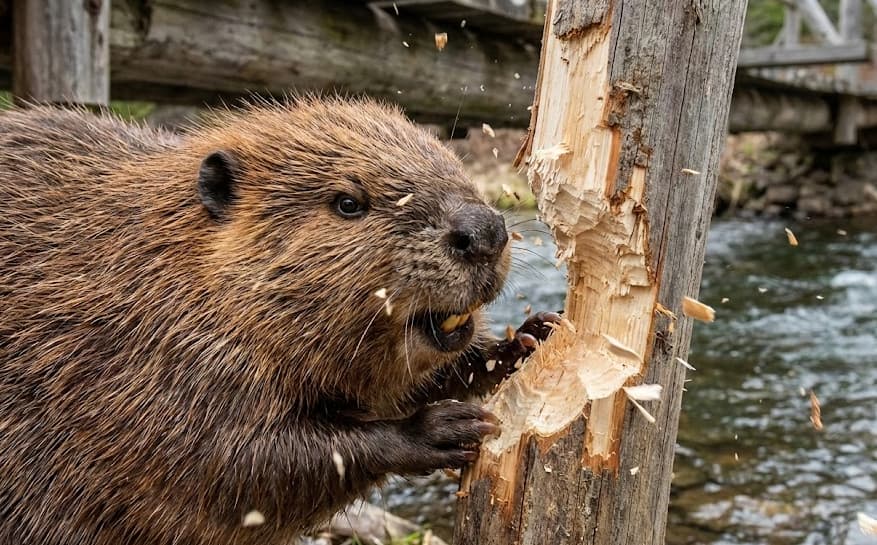 Perhaps… a figure of a truly angry ancestor beaver; figures of his very angry entended family; evidences of their mahem; townfolk trying to either contain or abate them; and maybe slimy business guys harnessing them for work on a local dam or lumber operation…