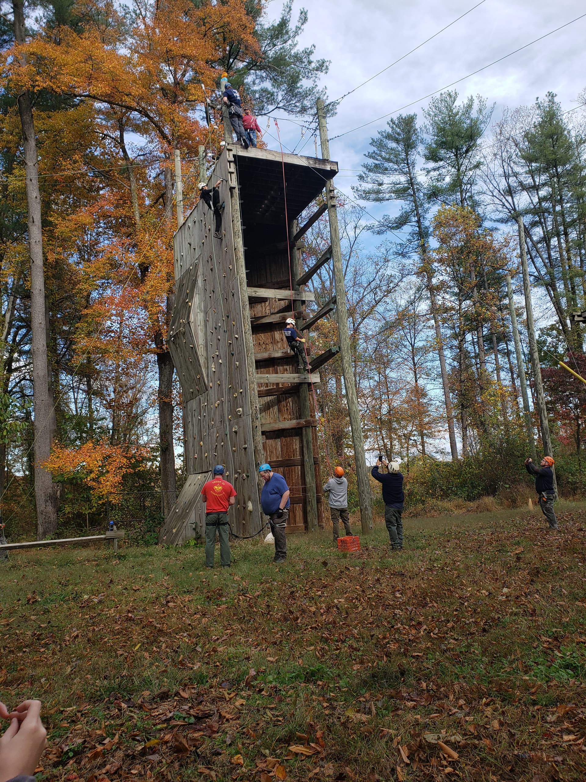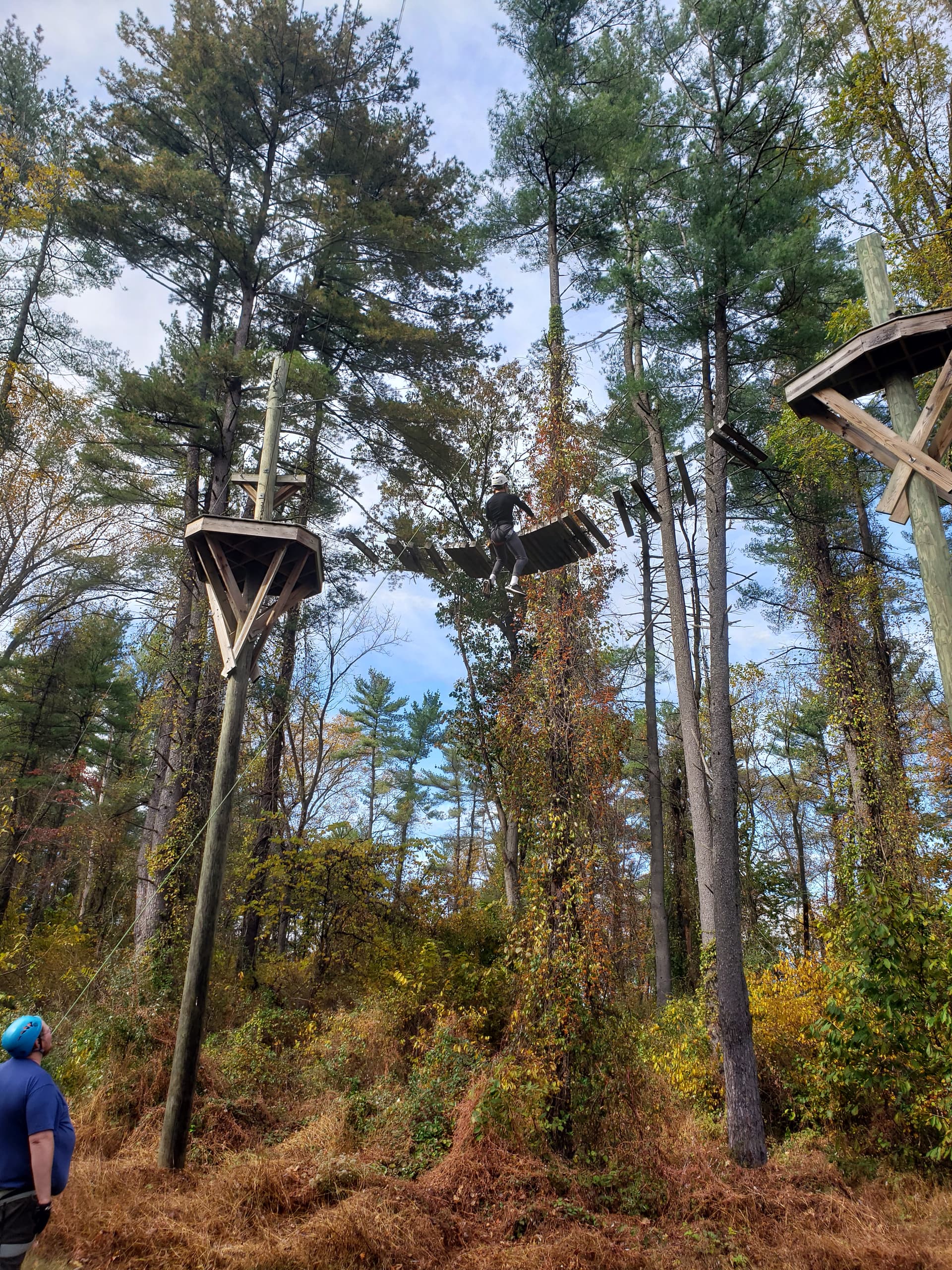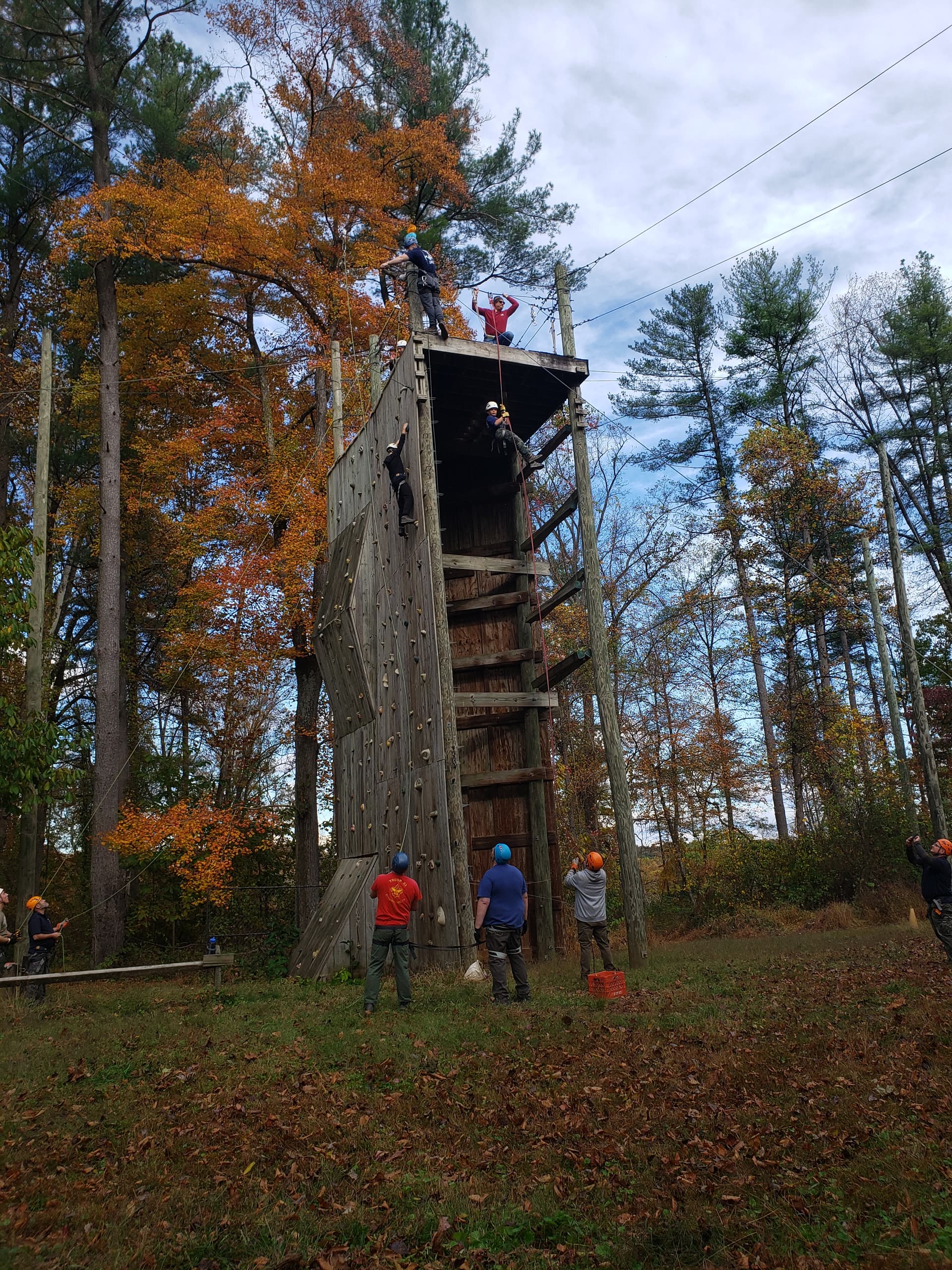 On Saturday I had a few COPE high elements open. The climbing wall with an open rappel. Transverse over a 2 wire, then onto the Burma bridge.